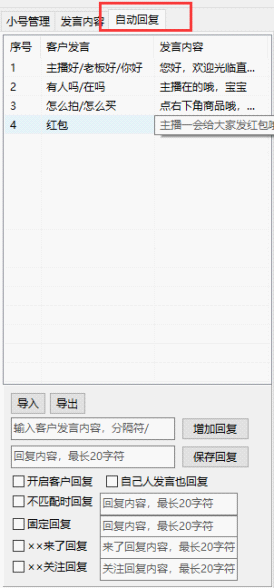 六、自动回复功能,可以自定义设置访客欢迎语。提升直播间留存度。